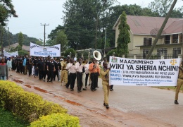 Mkuu wa Mkoa wa Kagera Brigedia Jenerali Marco E. Gaguti azindua rasmi maadhimisho ya Wiki ya Sheria nchini Mkoani Kagera kwa kupokea maandamano ya wadau mbalimbali wa Sheria wakiongozwa na Jaji Mfawi...